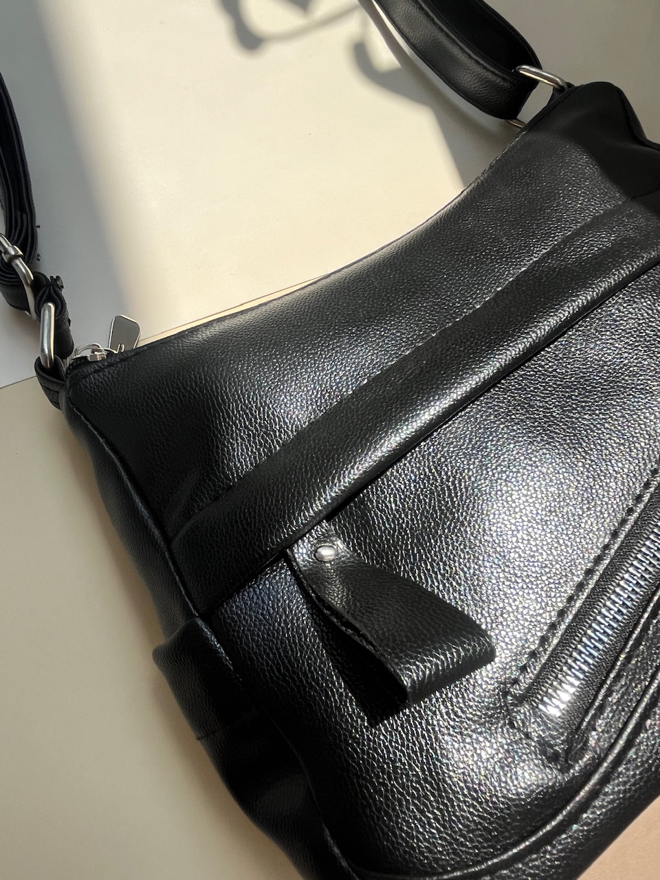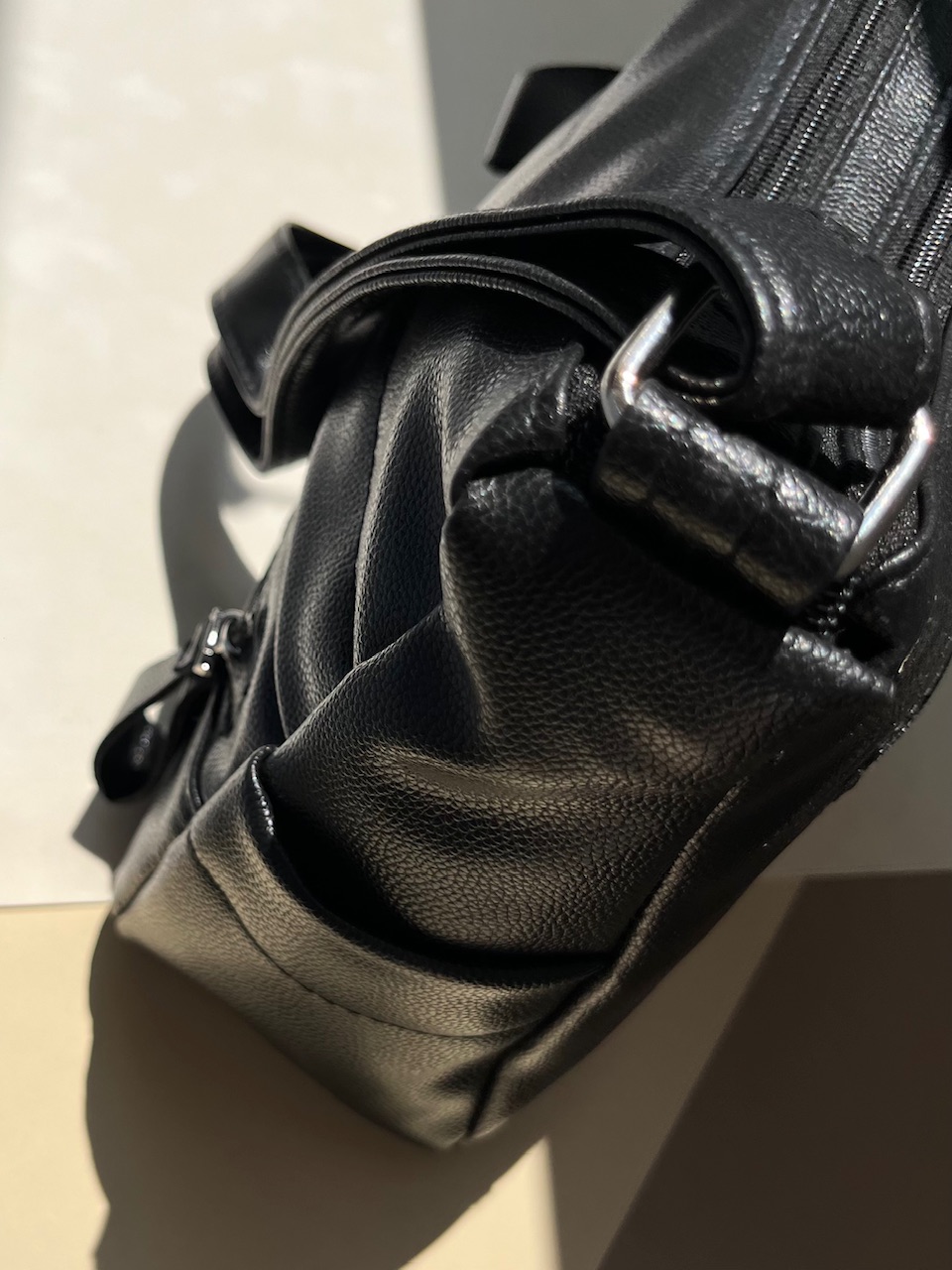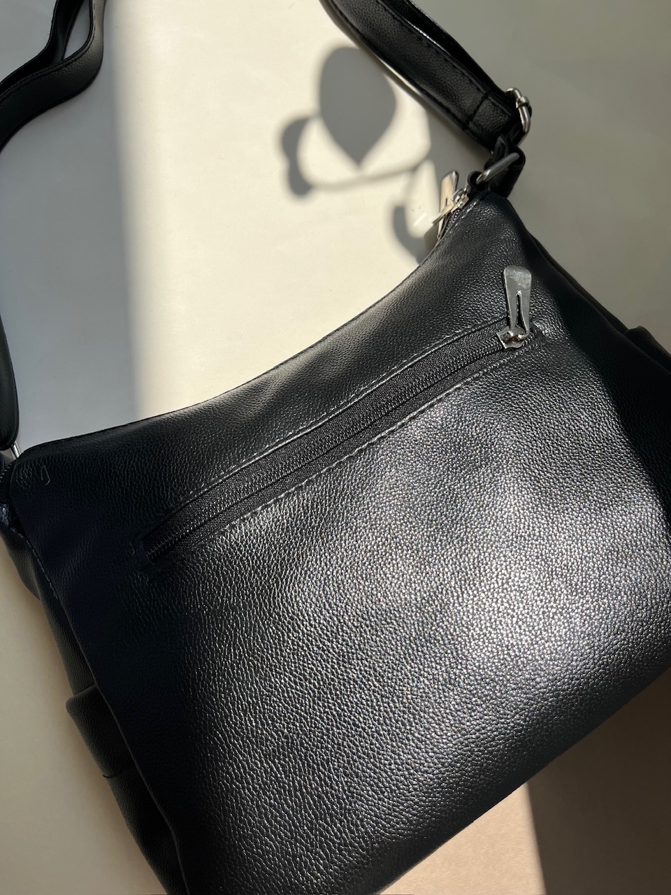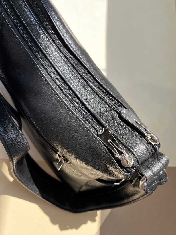 مهم نیست اهل کدام سبک باشید؛ این کیف زنانه چرم مشکی با طراحی ساده و مدرن قطعاً نظر شما را جلب خواهد کرد. جنس چرم مصنوعی مشکی مرغوب آن ظاهری شیک و لوکس دارد و در عین حال بسیار بادوام است؛ بدون اینکه فشار زیادی به کیف پولتان وارد کند! زیپ مورب خاص کیف، زیبایی منحصر به فردی به آن میبخشد و دسترسی سریع و آسان به وسایل داخل آن را ممکن میکند. بند بلند و قابل تنظیم کیف نیز استفاده در تمامی موقعیتها – از گشتوگذار در بازار تا محل کار – را برای شما راحت میسازد.